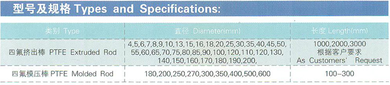 Diameter 1-5mm rods are made of polytetraflu resin by paste extrusion processing: Diameter 6-200mm rod selection suspension PTFE resin made by plunger processing Diameter more than 200mm rods by molding production